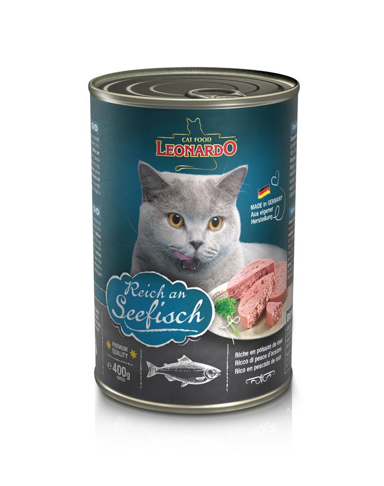 Kött och animaliska biprodukter (40 % + köttbuljong 34 %); fisk och fiskbiprodukter (25 % havsfisk); mineraler (0,5 %); Äggskal, torkade (0,5 %)