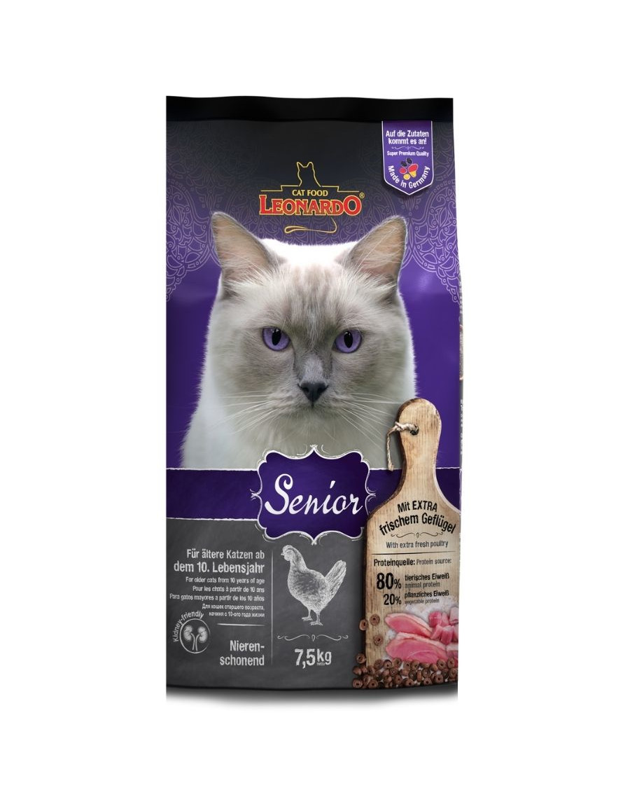 När din katt långsamt blir äldre förändras också dess näringsbehov. Energibehovet minskar och immunförsvaret försvagas med åldern. LEONARDO® Senior anpassar sig till dessa förändringar med ett speciellt recept och håller din katt frisk och kry upp i hög ålder.