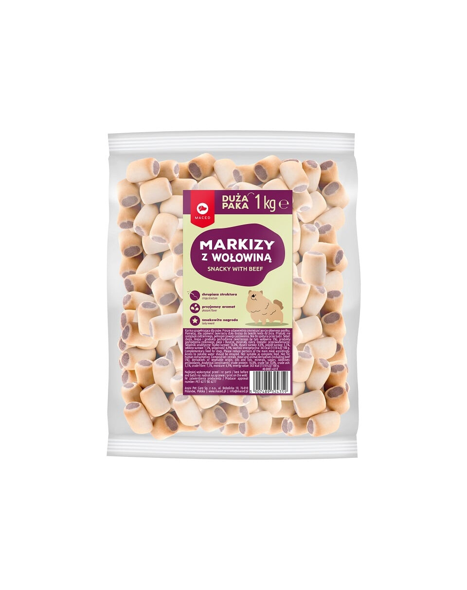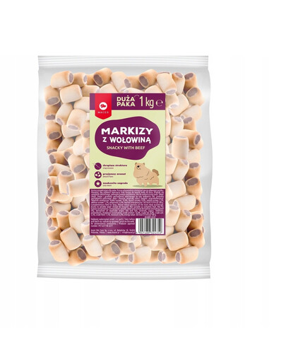 Beef Marques är en välsmakande godbit som är ett utmärkt komplement till den dagliga kosten. Den köttiga smaken och aromen gör det till ett exceptionellt gott och knaprigt mellanmål för alla hundar. Marques är en riktig festmåltid för ditt husdjur och en källa till energirikt protein. Godiset kan ges som belöning för bra beteende eller under träning. Det är ett universellt godis för alla hundar. Innehåller inga konstgjorda smakämnen.