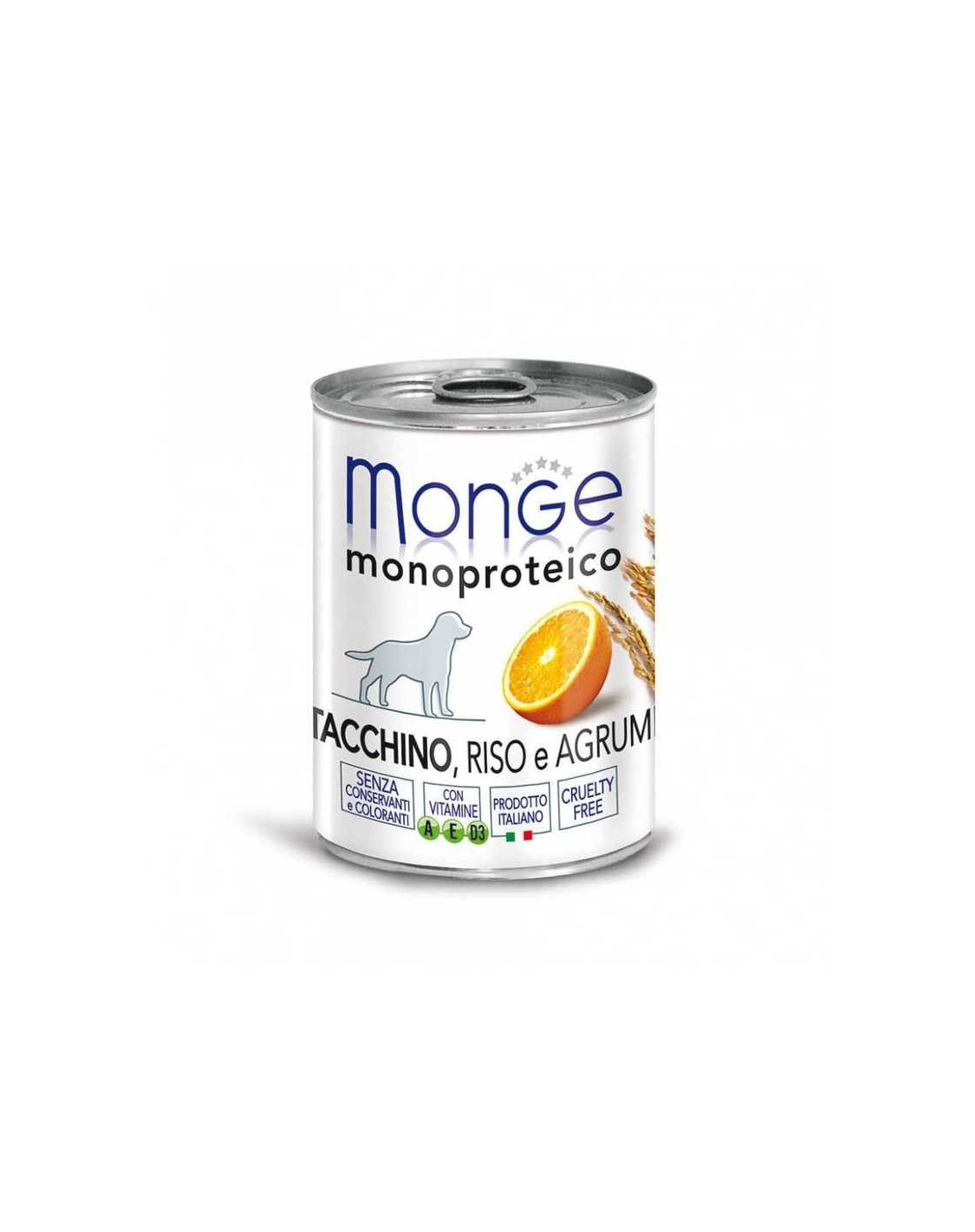 Monge MONOPROTEICO är en välsmakande patty från single-protein-foderlinjen gjord av utvalt kalkonkött av högsta kvalitet med tillsats av ris och apelsiner. 100 % italienskt recept, rikt på vitamin A, E och D3 med en garanterad proteinkälla från endast en typ av kött. Fri från konstgjorda färgämnen och konserveringsmedel. Recept med lågt sockerinnehåll.