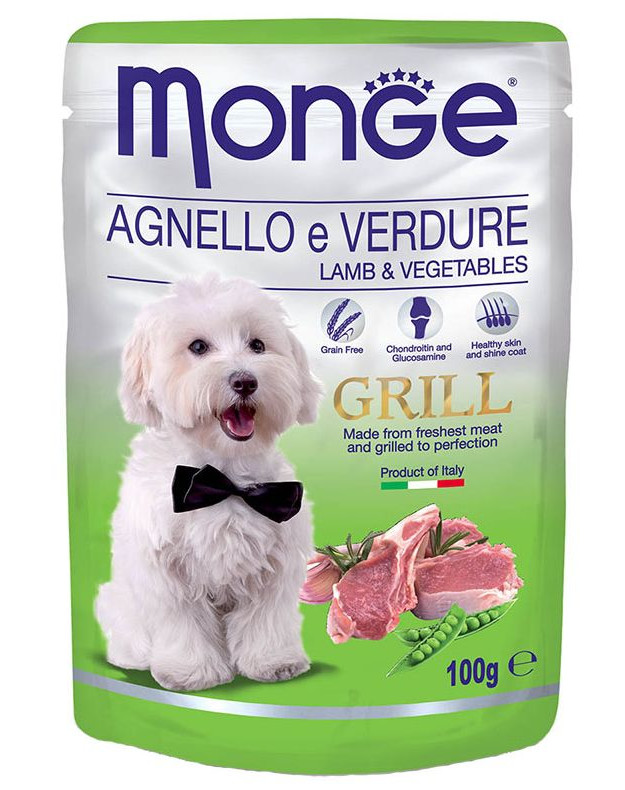Komplett våtfoder för hundar baserat på perfekt grillat lamm med tillsatta grönsaker. Innehåller kondroitin och glukosamin, som är nödvändiga för en god ledutveckling. Tack vare Monge Grill-produkterna får din hund en vacker och glänsande päls. Det är en spannmålsfri produkt.