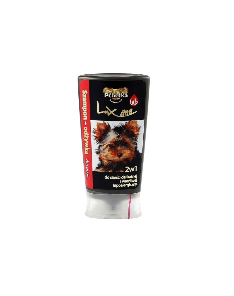 Schampo + balsam 2 i 1 - det här är produkter från serien LuxLine, som är avsedda för hundar och valpar som kräver särskild uppmärksamhet. De är perfekta för hundar med känslig och ömtålig hud och päls. Den rengörande effekten av schampot är mild och orsakar inte allergier eller irritationer. Inkluderingen av balsam som innehåller vaxer och vitaminer har statisk-antistatisk effekt, detta balsam främjar mjukhet och glans.