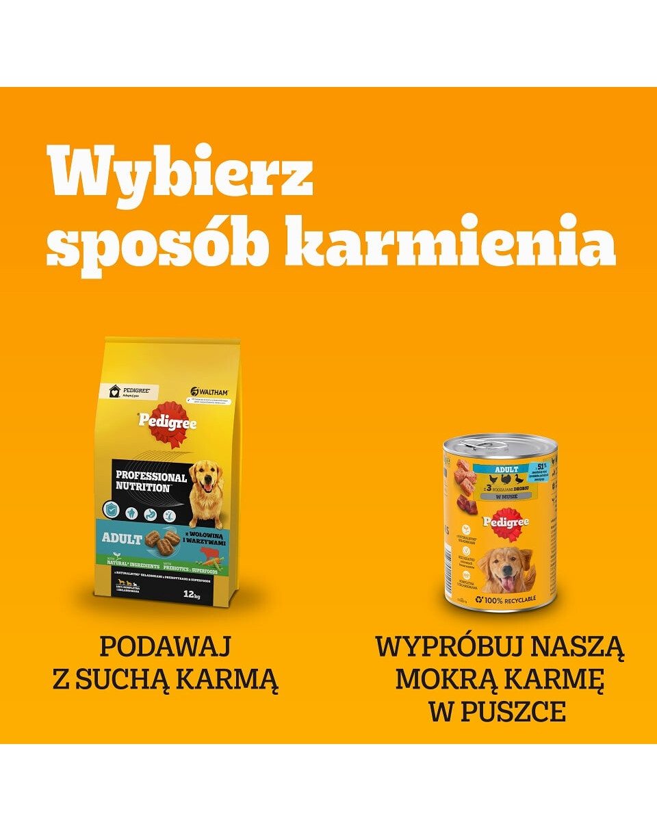 Våtfoder PEDIGREE Adult Vitality+ med grönsaker i krämig sås är en komplett kost avsedd för vuxna hundar i fyra utsökta smaker: med nötkött och lever, morötter och ärtor, med kyckling och potatis, med fisk och morötter, med fågel, morötter och ärtor. Receptet har utvecklats av veterinärer och dietister från WALTHAM Institute of Animal Science och innehåller glukosamin som hjälper till att upprätthålla friska leder, vilket främjar rörlighet. De vitaminer och antioxidanter som ingår har antioxidativa egenskaper och stödjer din hunds naturliga försvarsmekanismer. B-vitaminer och zink stödjer en hälsosam hud och päls, så att din hund ser bra ut och mår bra. PEDIGREE-fodret innehåller naturlig kostfiber och prebiotika som hjälper till att upprätthålla en hälsosam tarm, eftersom varje hund förtjänar en frisk mage.
