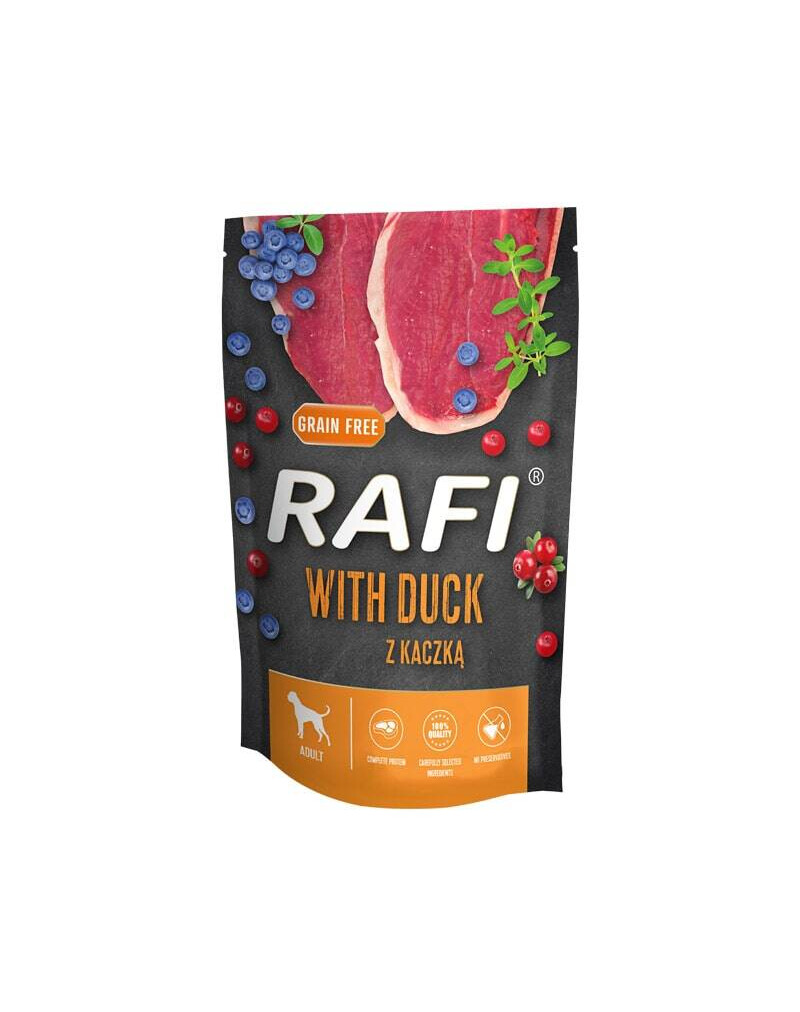 Ingredienserna inkluderar en stor mängd ankött och animaliska produkter. Detta innebär att denna våtmat tillhandahåller fullvärdigt protein, som är en källa till alla essentiella aminosyror. Dessutom är det en bristfällig källa till aminosyror (särskilt svavel), vilket gör att det inte kräver komplettering med spannmålsprodukter. Fodret för ankor innehåller lämpliga proportioner av selen, koppar och järn, som kan tillgodose den dagliga behovet hos en vuxen hund. Särskilt viktiga komponenter i ankött och buljong är fettsyror från n-6 och n-3 familjerna, som reglerar matsmältningssystemets funktion. Tillsatsen av timjan ger rätter arom och smak samt stödjer matsmältningsfunktionerna. Blåbär skyddar kroppen mot fria radikaler, och tranbär förhindrar urinvägsinfektioner.