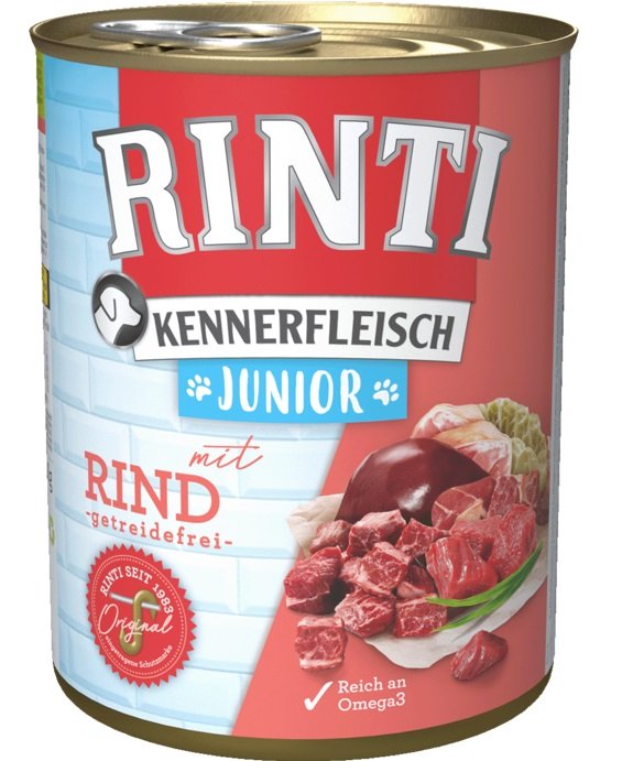 För valpar och det ökade näringsbehovet under tillväxtfasen. Hög kötthalt: Med 70 % kött och inälvor är Rinti Kennerfleisch rikt på naturliga köttbitar - och det är just bitarna som kännetecknar originalet Rinti Kennerfleisch. Med Omega 3: Dessa fleromättade fettsyror används för att stödja immunförsvaret och skydda cellerna. Laxolja är rik på omega 3. Med betfiber: Rik på fibrer, som har en reglerande effekt på matsmältningen.