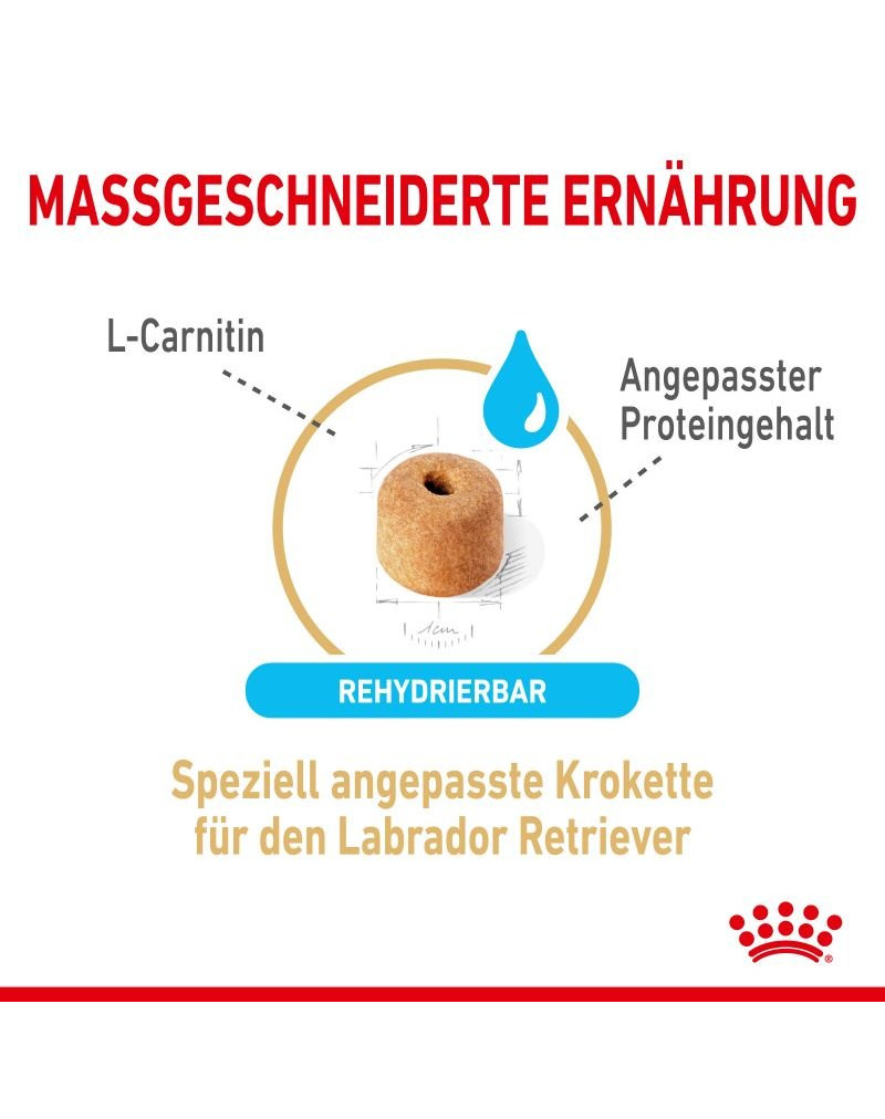 Kibblen i ROYAL CANIN Labrador Retriever Adult 5+ torrfoder är anpassade i storlek, form och konsistens till äldre Labrador Retrievers behov. Kibblen kan blötläggas i varmt vatten för att göra dem lättare att äta.