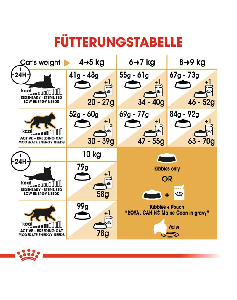 För att tillgodose de individuella preferenserna hos olika katter finns ROYAL CANIN Maine Coon Adult också som våtfoder i sås utöver torrfoder. Om du överväger blandad utfodring, följ bara våra utfodringsrekommendationer för att säkerställa att din katt får rätt mängd våt- och torrfoder.