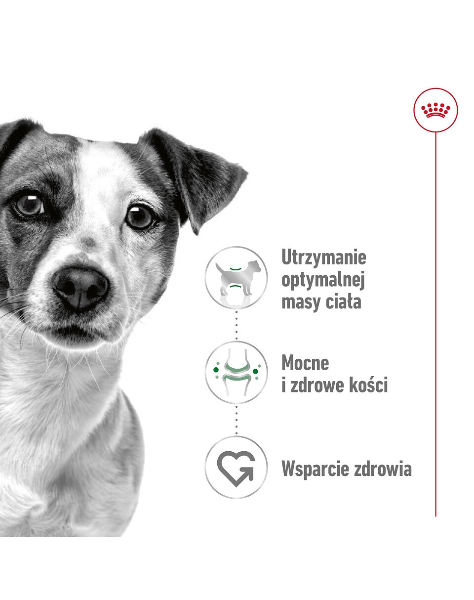 ROYAL CANIN Mini Adult är ett komplett foder, med en recept som är korrekt balanserad näringsmässigt och utvecklad speciellt med hänsyn till de specifika behoven hos små raser.