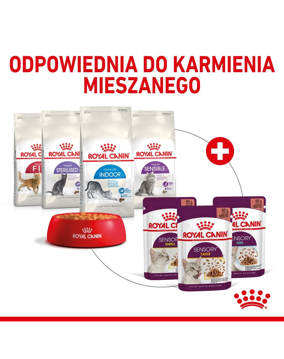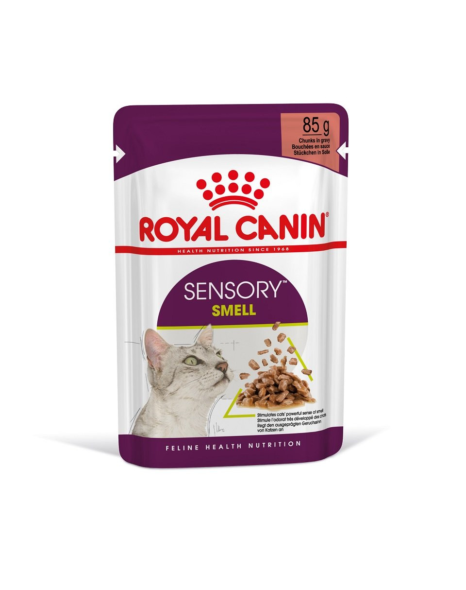 På grund av sina speciella sinnen uppfattar katter sin omgivning på ett mycket unikt sätt. I slutändan beror deras välbefinnande bland annat på hur deras sinnen stimuleras. Med Sensory har ROYAL CANIN utvecklat tre våtfoder som var och en stimulerar kattens luktsinne, smak och munkänsla, vilket ger sensorisk variation.