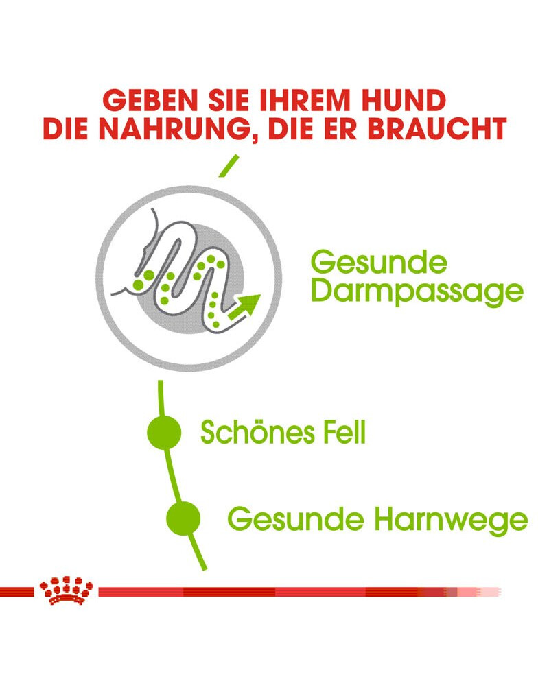 .ROYAL CANIN X-Small Adult innehåller högkvalitativa proteiner (L.I.P.)* som är speciellt utvalda för sin höga smältbarhet. Dessa proteiner, i kombination med ett balanserat intag av kostfibrer såsom psyllium, bidrar till en hälsosam tarmaktivitet och god avföringskvalitet.