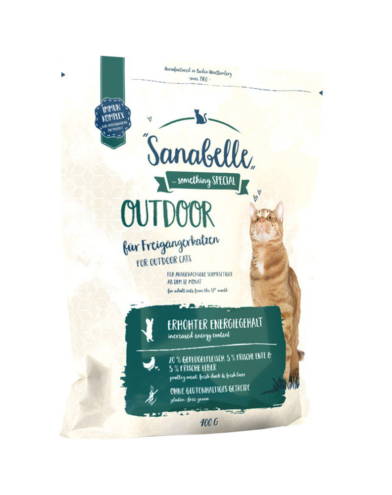 Sanabelle Outdoor är ett hälsosamt och smakrikt helfoder speciellt för utekatter och äventyrare. Utekatter tillbringar en stor del av sina liv utomhus och har därför särskilda näringsbehov. Sanabelle Outdoor är anpassat till behoven hos aktiva katter, vars energibehov ökar på grund av förändrade utomhustemperaturer och deras ökade behov av att röra på sig.