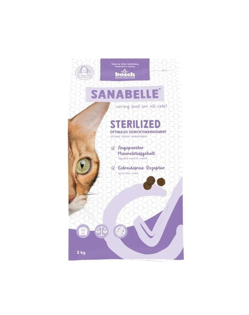 Sanabelle Sterilized är ett komplett torrfoder med en speciellt anpassad recept för katter efter kastrering eller sterilisering. Efter ingreppet förändras kattens energibehov avsevärt – ämnesomsättningen saktar ner och aptiten ökar ofta. Därför har denna formel utvecklats för att ge en känsla av mättnad med lägre kaloriinnehåll, samtidigt som den tillhandahåller alla nödvändiga näringsämnen.