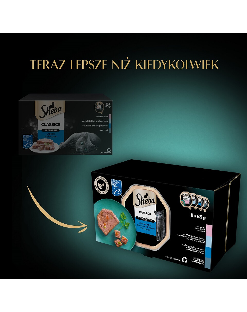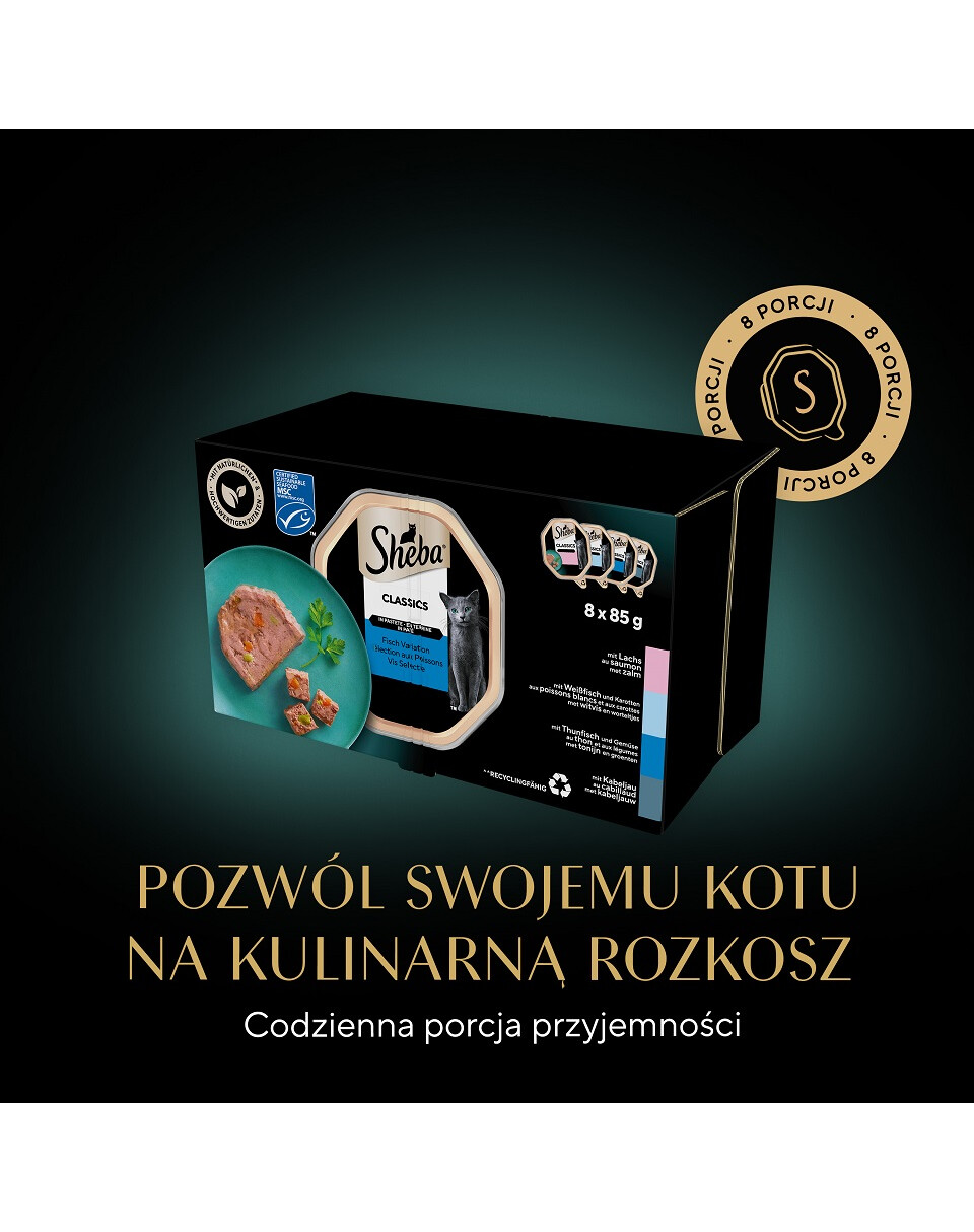 Heltäckande foder från Sheba Classics är en verklig njutning i form av en utsökt terrin för din kattvän. Måltidsalternativ i 4 smakvarianter med: lax, vit fisk och morot, tonfisk och grönsaker, torsk kommer att förtrolla även de mest kräsna katterna. Hemligheten bakom Sheba® Classics mästerliga recept är raffinerade ingredienser samt vitaminer och mineraler. Varje förpackning innehåller näringsämnen som stödjer din katts normala funktion. Låt din katt njuta av kulinariska läckerheter med det läckra Sheba Classics fodret som tillfredsställer även den mest kräsna aptiten.