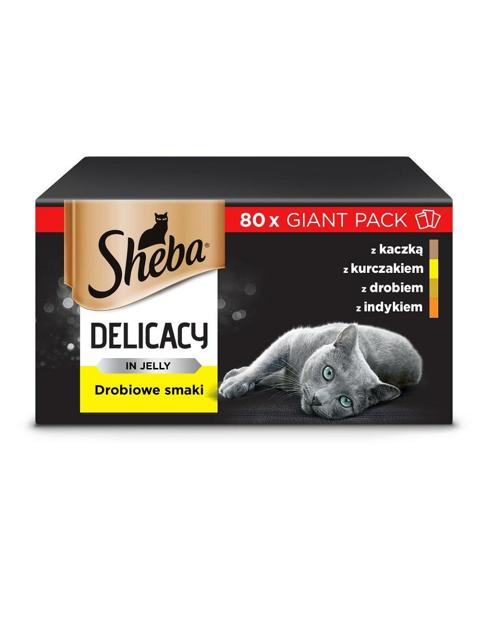 SHEBA Delicacy Poultry Flavours är ett recept som har utvecklats tack vare över 30 års erfarenhet. De extremt välsmakande flingorna i delikat gelé med anka, kyckling, fågel och kalkon är ett helfoder som ger din katt en balanserad daglig dos av näring. Vitamin D3 och zink i receptet stöder immunförsvaret och receptet innehåller inga spannmål.