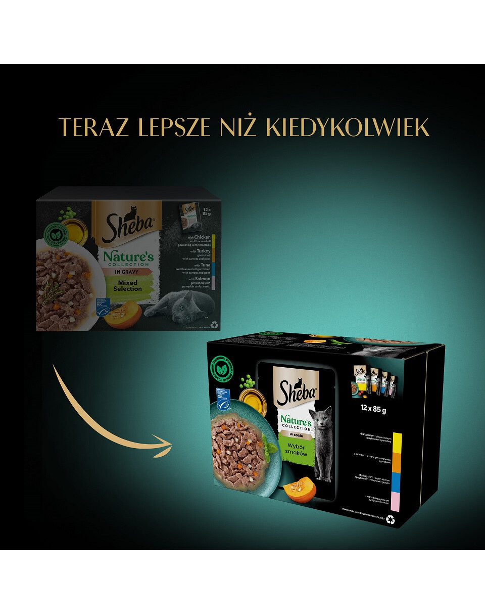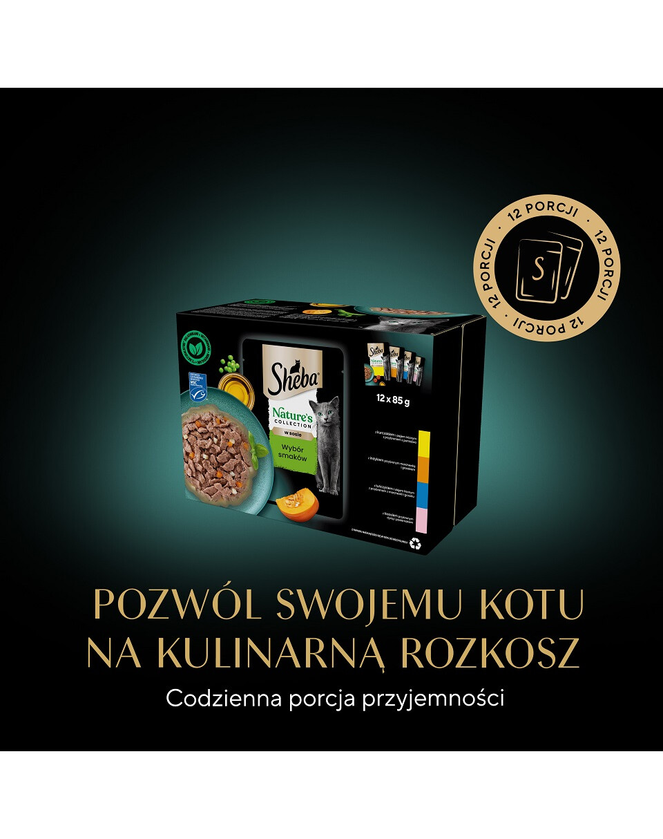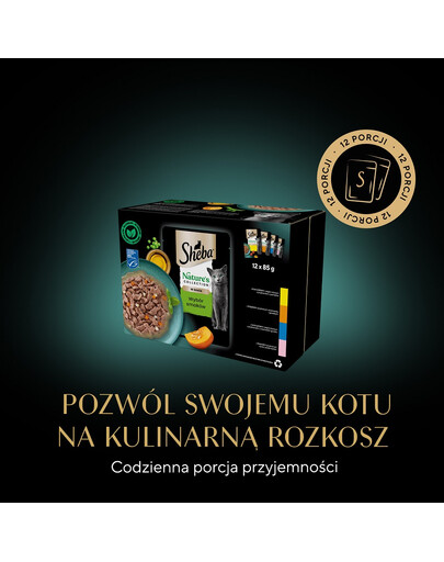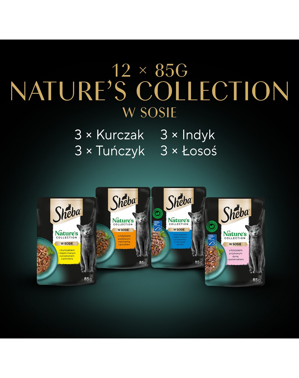 Sheba Nature’s Collection Smakval är en blandning av noggrant utvalda, ömma bitar i en utsökt sås. Måltidsförslag i 4 smakvarianter, bitar med: kyckling och linfröolja med tomattopping, kalkon med morot och ärtor, tonfisk och linfröolja med morot och ärtor, lax med pumpa och palsternacka, kommer att förtrolla även de mest kräsna katternas smaklökar. Mästerligt tillagade måltider med naturliga ingredienser av hög kvalitet, med vitaminer och mineraler. Dessa spannmålsfria recept kommer att charma din katt med det bästa från naturen. Varje påse innehåller näringsämnen som stödjer din katts normala funktion. Låt din katt njuta av kulinariska läckerheter med den läckra maten Sheba Nature’s Collection Smakval, som tillfredsställer även den mest kräsna aptiten.