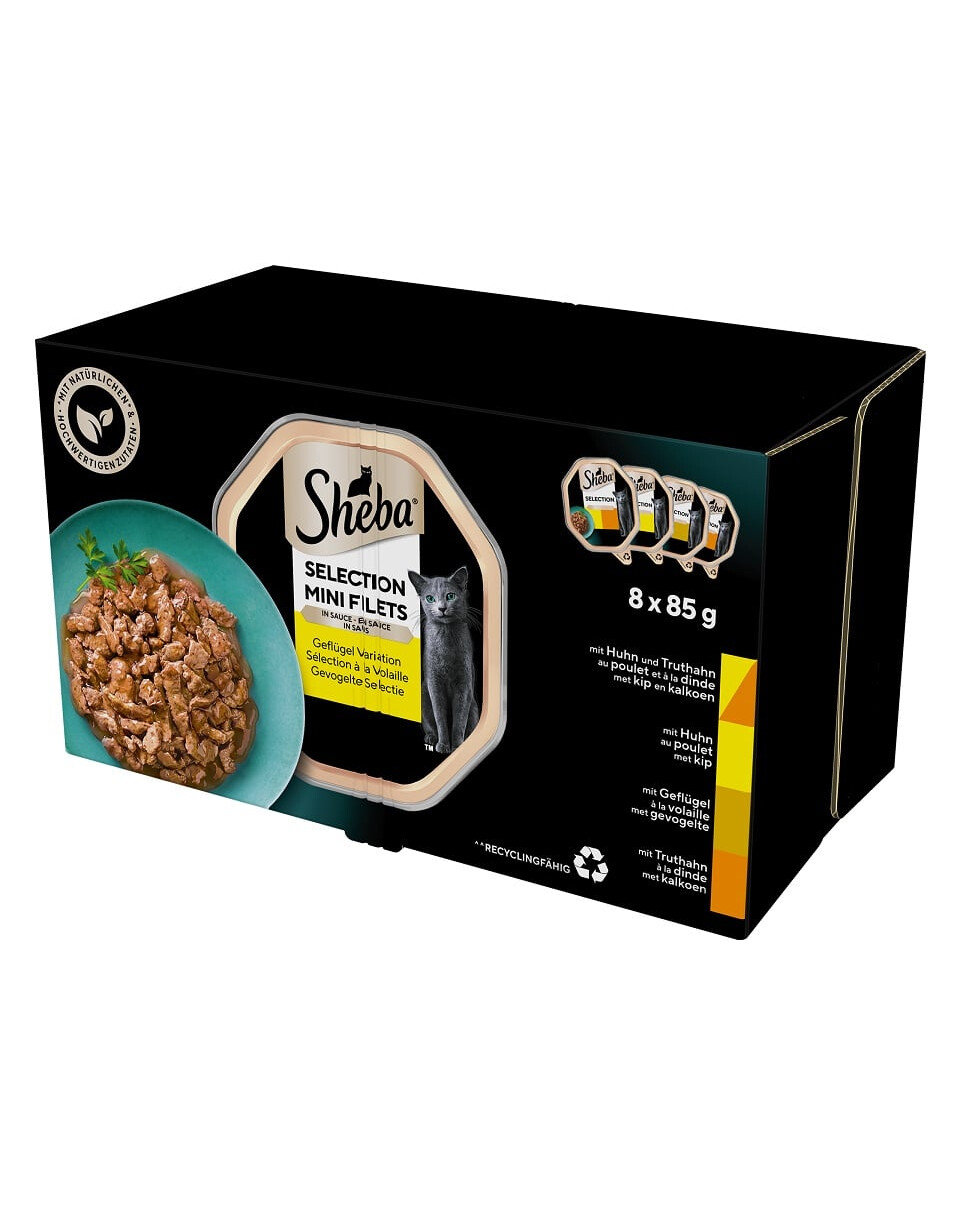 Sheba Selection Fjäderfäsmaker är en blandning av noggrant utvalda bitar i en sammetslen sås. Måltidsförslaget finns i 4 smakvarianter, bitar med: kyckling och kalkon, kyckling, fjäderfä, kalkon, som kommer att förtrolla även de mest kräsna katternas smaklökar. Hemligheten bakom den mästerliga receptet Sheba Selection Fjäderfäsmaker är raffinerade ingredienser samt vitaminer och mineraler. Varje förpackning innehåller näringsämnen som stödjer din katts normala funktion. Låt din katt njuta av kulinariska läckerheter med den utsökta maten Sheba Selection Fjäderfäsmaker, som tillfredsställer även den mest kräsna aptiten.
