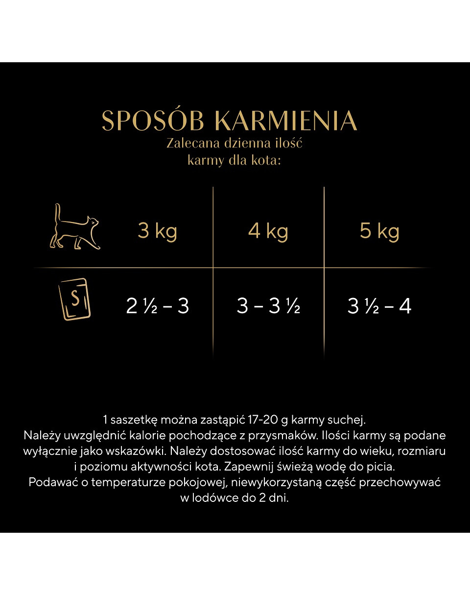 En katt som väger 4 kg behöver 3-3,5 påsar per dag.