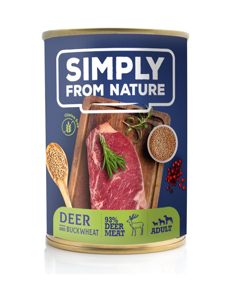 La nourriture est à base de viande de cerf, qui est appréciée pour ses qualités nutritionnelles et gustatives exceptionnelles. C'est une source de protéines animales complètes de haute qualité et de fer. Le bon profil en acides aminés assure le bon développement du chien et favorise la régénération des muscles et des tissus.