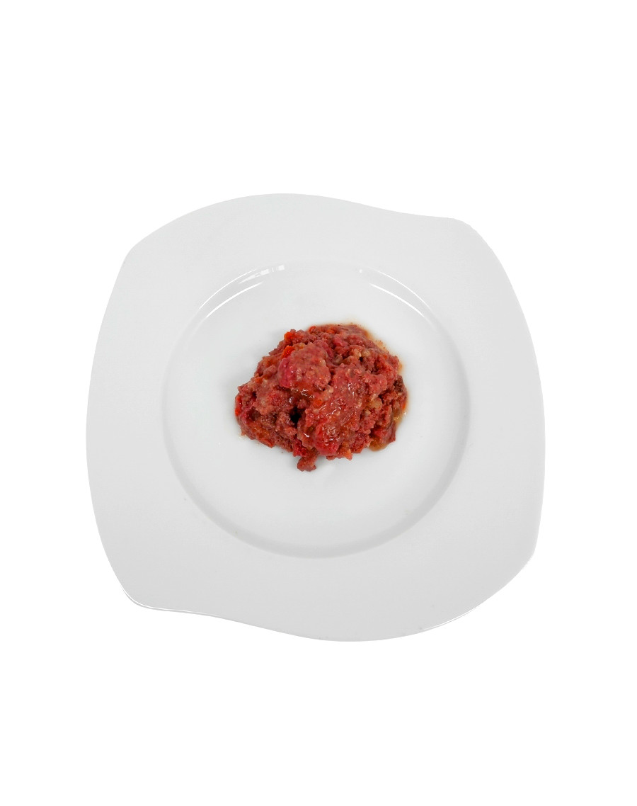 80 % ankkött (varav: 60 % muskelkött, 19 % krås, 12,5 % hjärta, 8,5 % hals), 15 % färska morötter, 3 % hirs, 2 % päron
