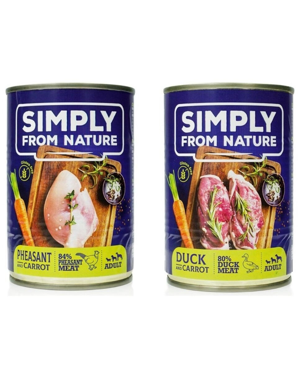 Det balanserade receptet är baserat på kött och inälvor, tillsammans med grönsaker och frukt. Avsaknaden av spannmål belastar inte hundens matsmältningssystem. Det hela är skonsamt och lättsmält. Naturliga ingredienser av hög kvalitet resulterar i ett smakligt och näringsrikt foder. Den låga värmebehandlingen av Simply from Nature våtfoder säkerställer att även kinkiga hundar kommer att älska det, och det behåller maximalt näringsvärde!