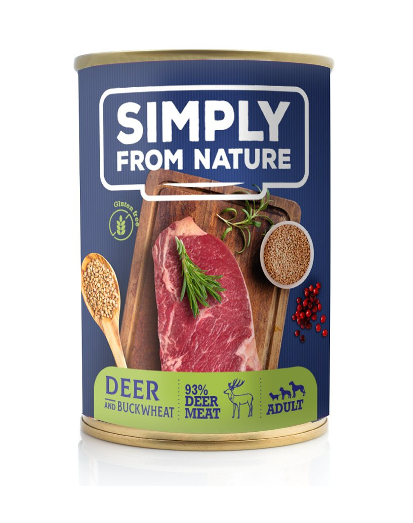Våt, balanserad hundmat för hundar i alla åldrar. Innehåller upp till 93% viltkött och slaktbiprodukter, kompletterat med bovete, tranbär och purjolök. Viltköttet är mört och lämpar sig för hundar med känslig matsmältning. Högkvalitativa ingredienser och minimal värmebehandling säkerställer att fodret är mycket lättsmält. Inga konserveringsmedel, färgämnen eller smakämnen.