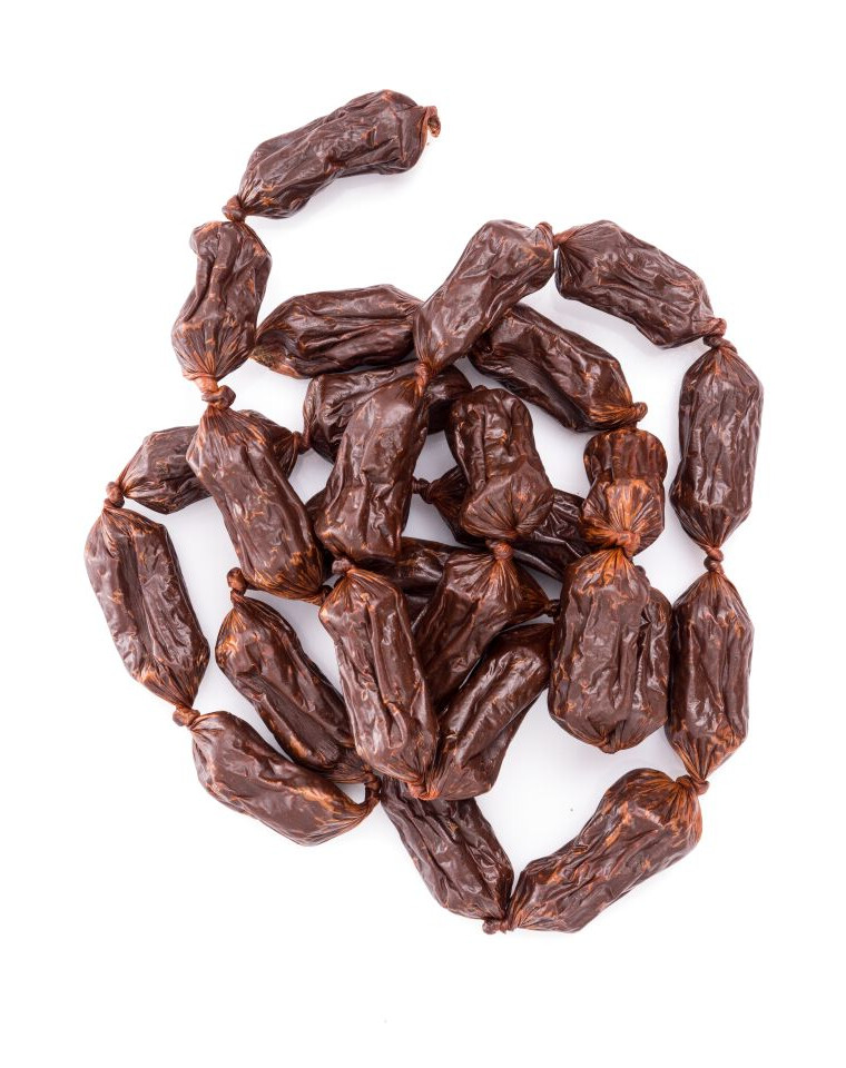 Handgjort av bara två ingredienser - nötmuskelkött och kollagentarm.
