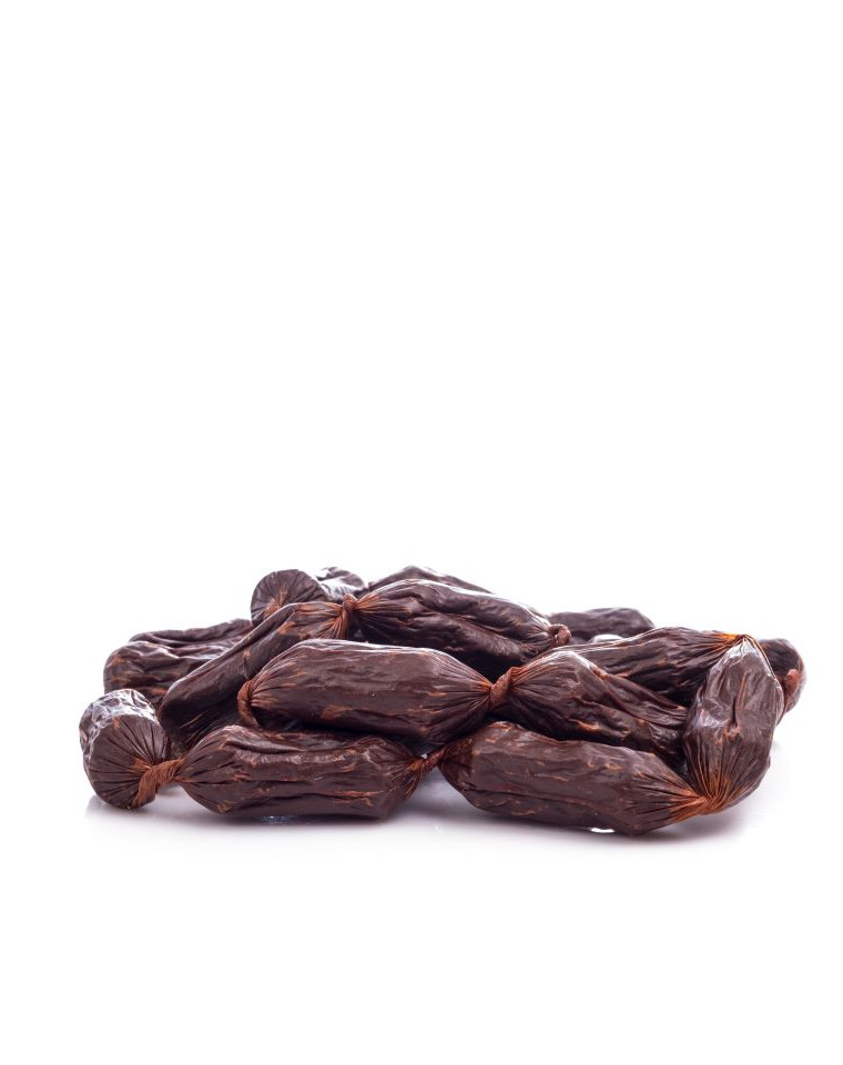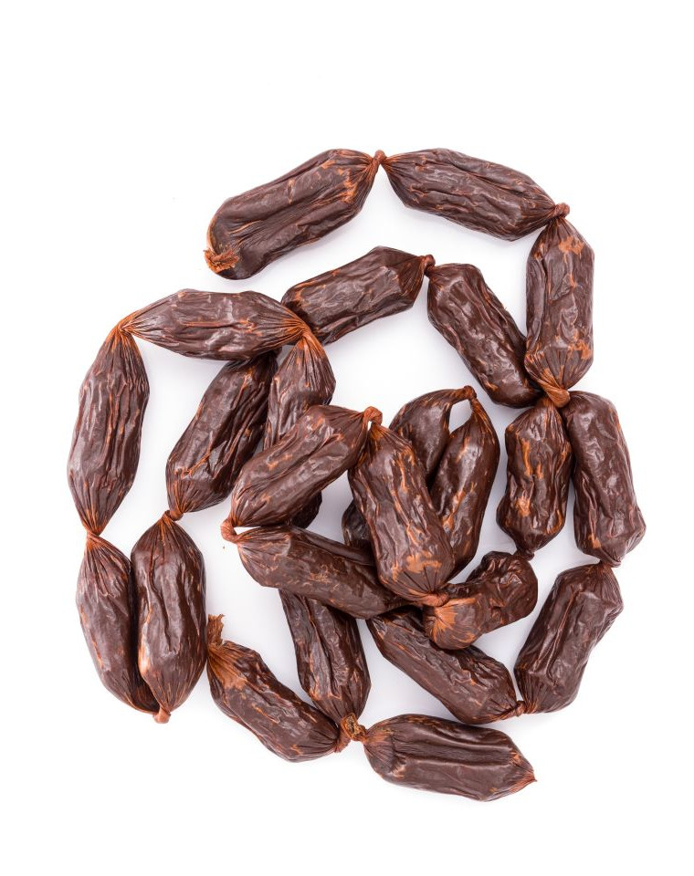 Handgjort av bara två ingredienser - hjortmuskelkött och kollagenhölje.