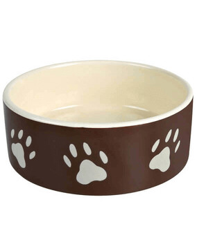 Keramisk skål för din hund. Brun färg med vita tassar.