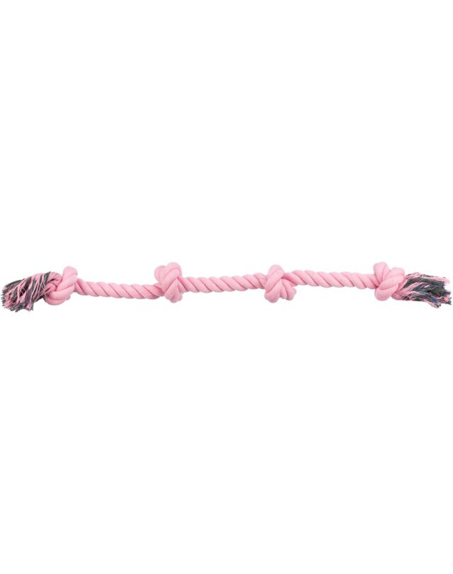 Ett rep tillverkat av bekvämt och slitstarkt material, kombinationen av bomull och polyester ger det bästa resultatet i hundleksaker. Repet har en extra knut i mitten, vilket ökar leksakens stabilitet och förbättrar spelkomforten. Repet kan också användas av din hund för självständig lek.