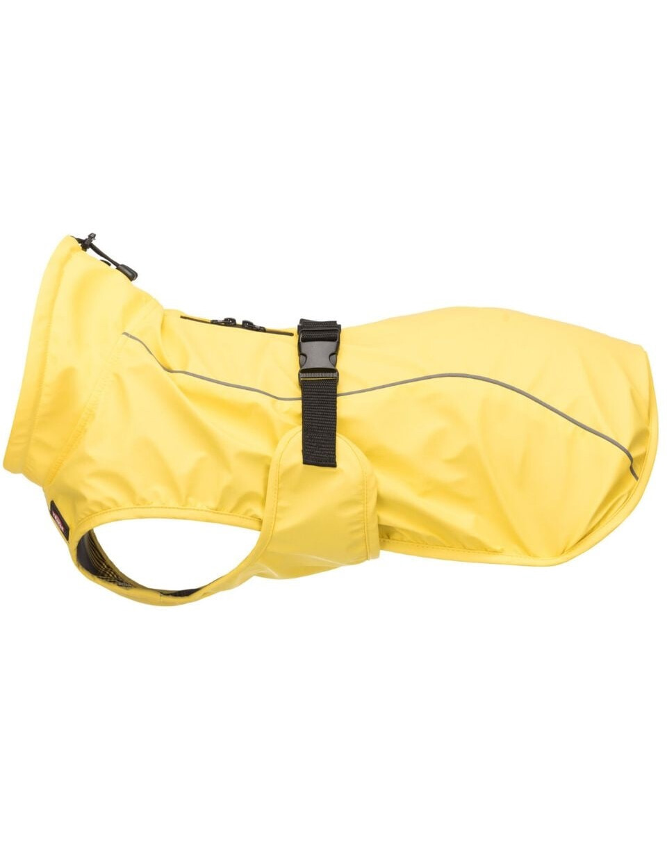 Regnjacka för hund Vimy är ett utmärkt skydd mot regn och vind. Tillverkad av hållbar polyuretan och polyester, har denna jacka två vattentäta dragkedjor för enkel anslutning till halsband eller sele. Reflekterande element säkerställer säkerhet under nattpromenader. Tack vare snöret vid kragen, det justerbara midjebandet och öglorna för benen, passar jackan perfekt till hundens kropp. Dessutom gör den lättskötta foder det enkelt att hålla rent. Ge din hund komfort och stil med Vimy-jackan.