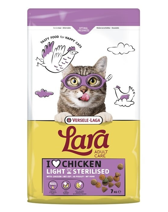 Lara Adult Light Sterilized med kyckling är ett perfekt balanserat foder för vuxna katter efter sterilisering och för de som lever ett lugnare liv. Det ger en optimal mängd energi och hjälper till att upprätthålla en korrekt vikt utan att ge avkall på smaken som katter älskar.
