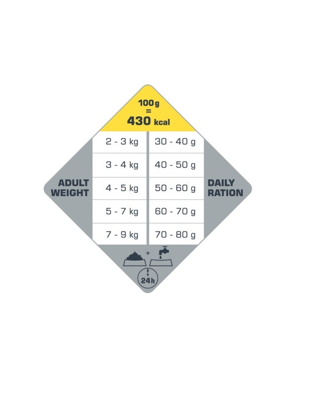 - En unik formel som är skräddarsydd för din katts näringsbehov: ett spannmålsfritt, kolhydratfattigt foder med 90 % animaliskt protein.