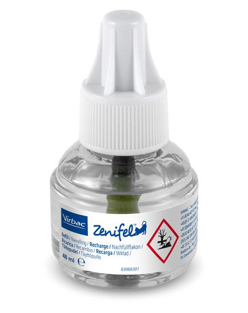 Lugnande feromoner rekommenderas främst för katter med stressrelaterade beteenden som urinmarkeringar i huset och överdriven klösning. De är också till hjälp i stressrelaterade situationer som förändringar i kattens miljö, flytt till ett nytt hem, höga ljud och sociala evenemang. Zenifel vaporiser använder en teknik som är långvarig och gör att feromonerna kan frigöras i 6 veckor.