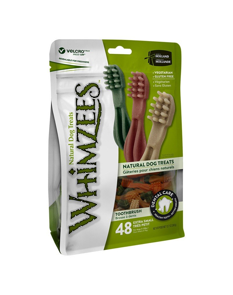 De borstformade WHIMZEES-tuggarna är vegetariska och Nature, helt ätbara och lättsmälta. Glutenfria, så en bra lösning för känsliga hundar.