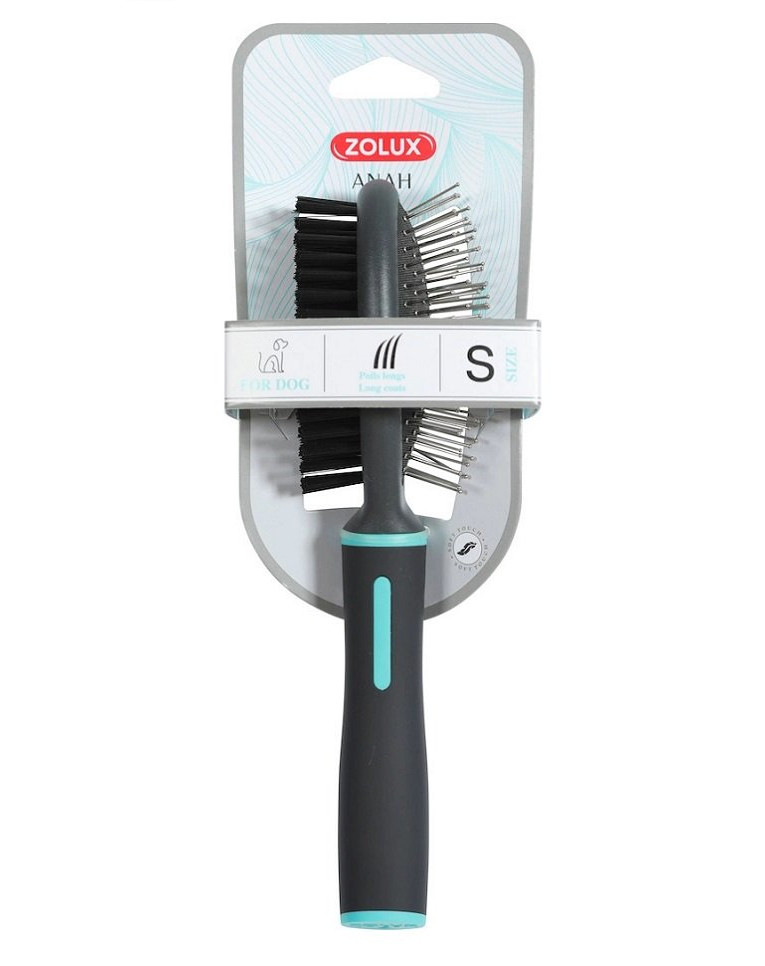 Den dubbelsidiga borsten är lämplig för långt hår.